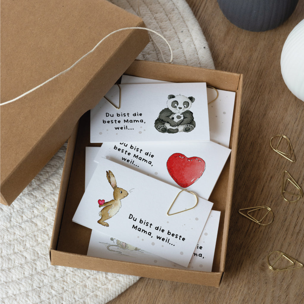 Persönliche Karten mit liebevollen Worten sind wie kleine Anker im Alltag. Sie können aufmuntern, erinnern, Kraft geben oder einfach für ein warmes Lächeln sorgen. Und: Sie bleiben. In der Schublade, im Portemonnaie, an der Pinnwand.