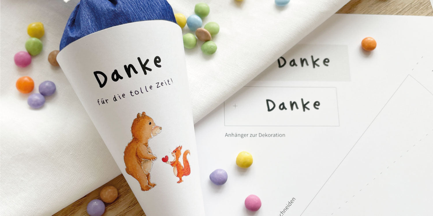 DIY Mini Zuckertüte zum Kindergarten Abschied und EinschulungDownload Bastelvorlage als digitale Datei