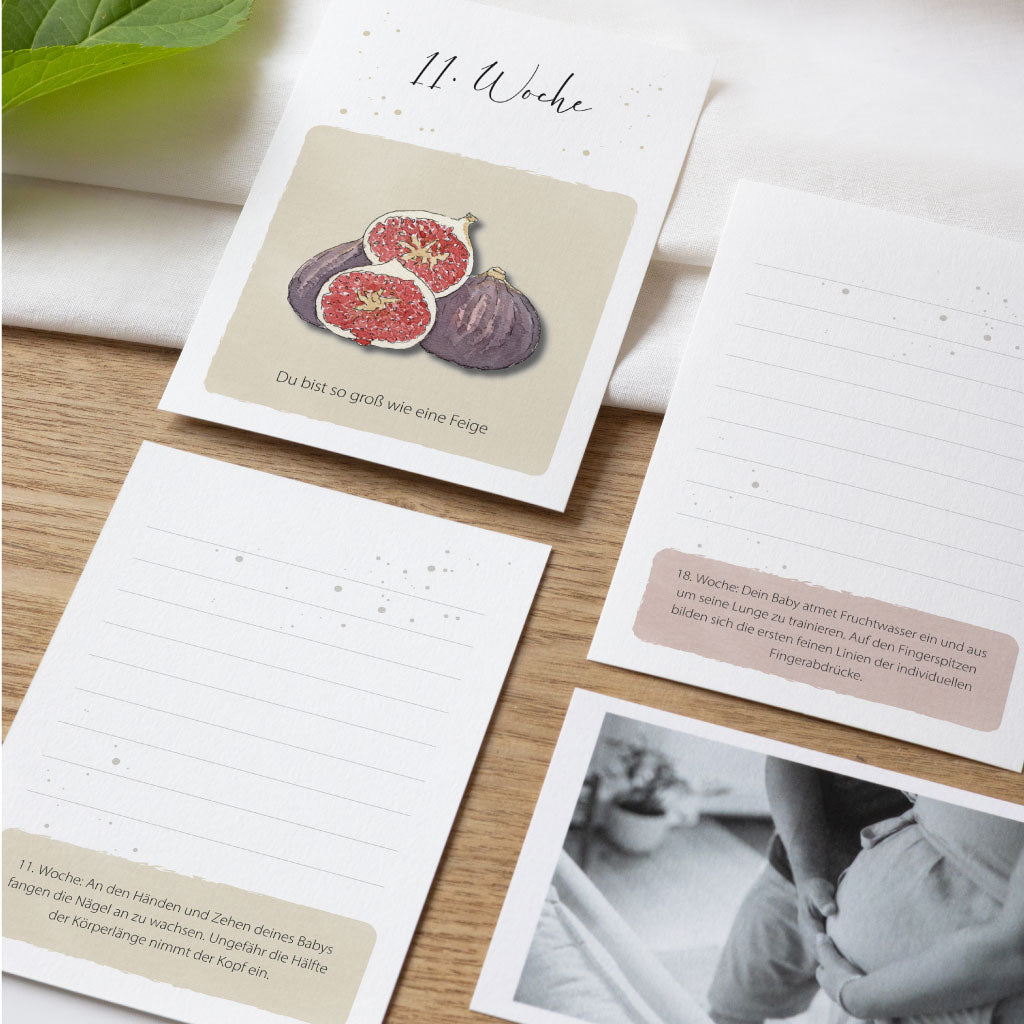 Meilensteinkarten mit Infos zur Babyentwicklung in der Schwangerschaft