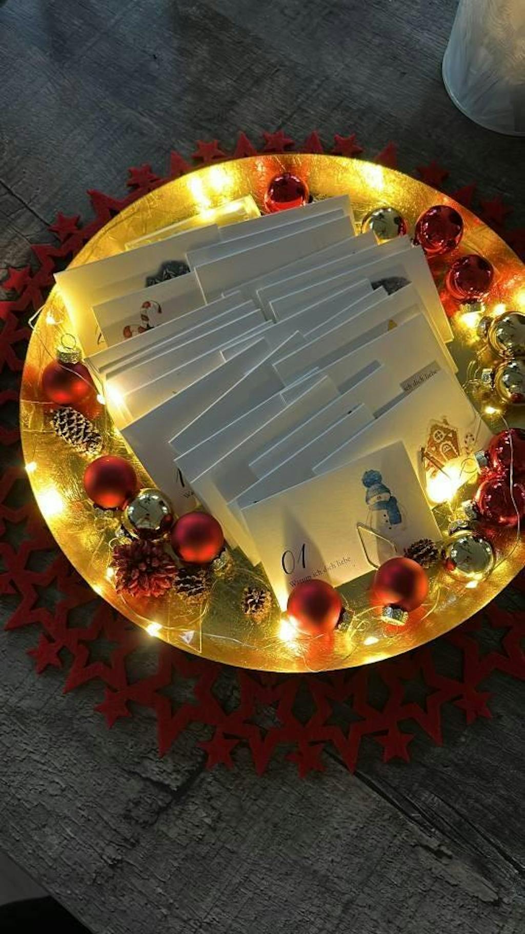 Du kannst die Briefchen an einer Schnur aufhängen oder mit weihnachtlicher Dekoration in einer Schale oder einem Glas drapieren. Optional kannst du sie auch mit einer Geschenkschachtel und Kordel bestellen.