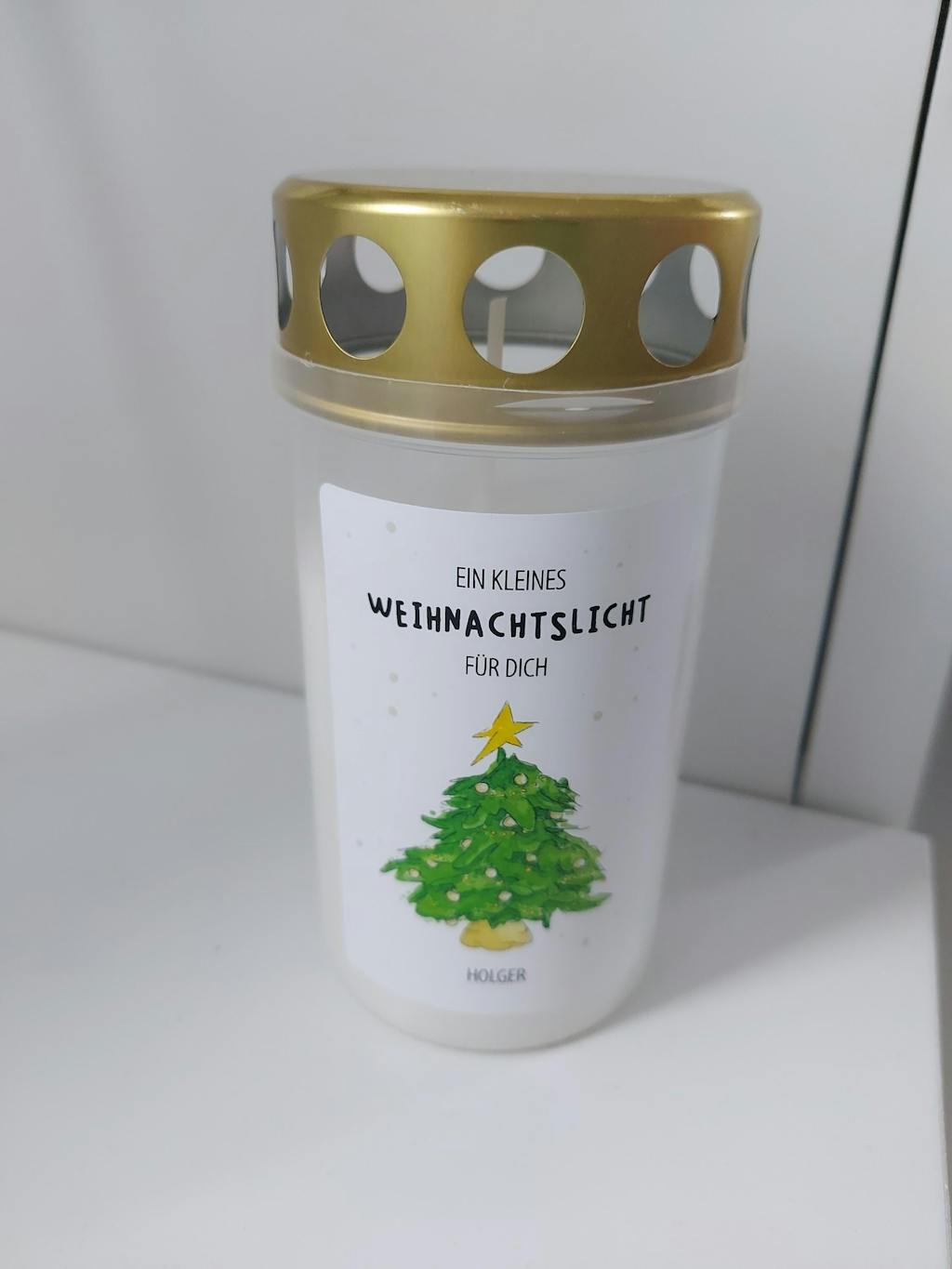 Mit dieser personalisierbaren Grabkerze kannst du an den Weihnachtstagen ein kleines Licht in den Himmel zu deinen lieben verstorbenen Angehörigen oder Freunden schicken. Du kannst das Grablicht natürlich auch als tröstendes Trauergeschenk verschenken. Die Grabkerze ist gleichermaßen für Erwachsene sowie für Kinder oder Sternenkinder geeignet.